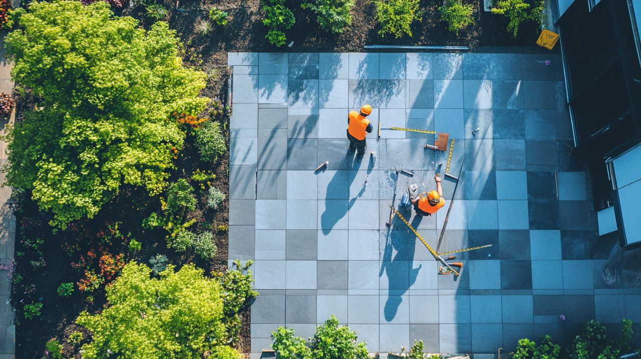 Au-delà du calcul théorique, il est essentiel d'anticiper les besoins en plots supplémentaires liés aux spécificités de l'installation. Les angles de la terrasse, les bordures et les zones de jonction requièrent souvent des supports additionnels pour assurer la stabilité des éléments périphériques. Un calepinage rigoureux, plan détaillé de l'implantation des lames ou dalles, des lambourdes et des plots, permet de visualiser précisément tous les points d'appui nécessaires et d'éviter les mauvaises surprises en cours de chantier. Ce document technique détaille les étapes : poser le cadre du projet, définir l'ossature avec l'entraxe approprié, positionner les plots sous les lambourdes et compter les points de support. Pour les dalles, les plots se positionnent systématiquement aux points de jonction entre quatre éléments, créant une trame régulière.